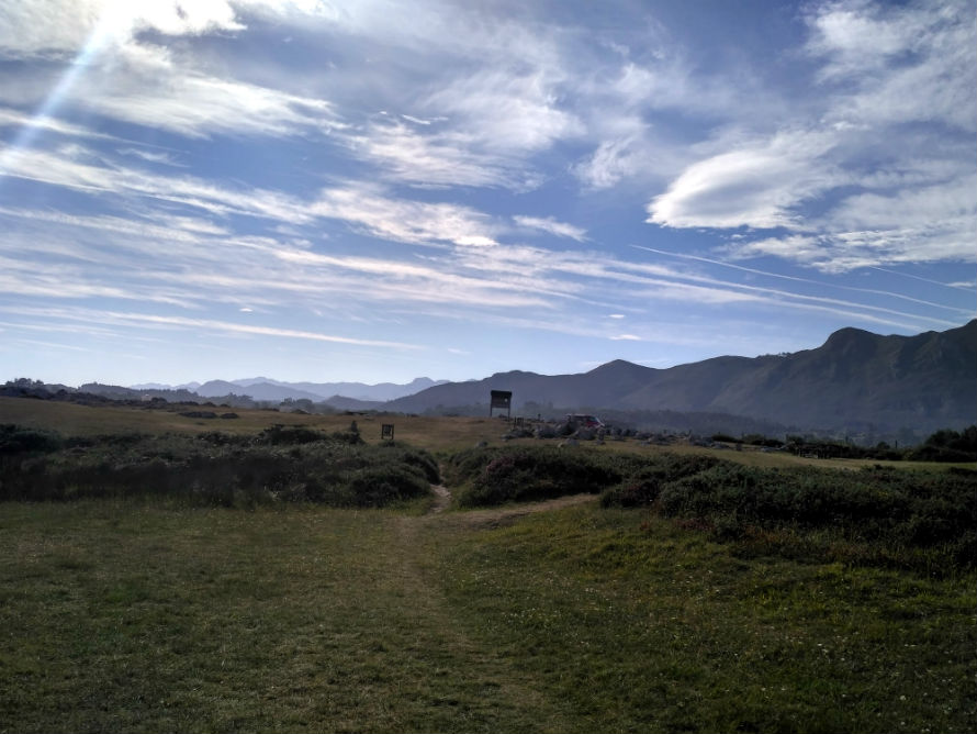 Hacia el Sureste el murallón de las Sierras de Benzúa y más al fondo la Sierra del Cuera. Al Sur, las Sierras que protegen los Valles de Ardisana en Llanes y de Santianes del Agua en Ribadesella. Con el majestuoso Picu Mofrechu y sus 898 metros dominando el Paisaje. Al Oeste, al fondo, la Sierra del Sueve y el Picu Pienzu sobresaliendo del perfil de la Cresta. Y al Norte el Mar Cantábrico. Una bestia que brama y que saliva espuma. Un mar que exhala salitre, reproduciendo un aroma inconfundible