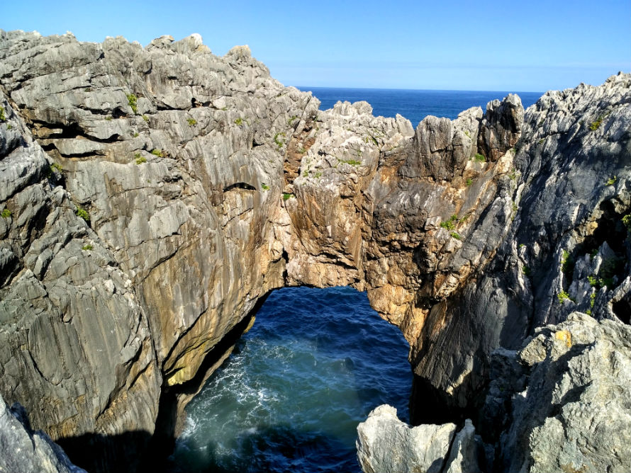 El ruido del mar golpeando la caliza nos acompañará en todo momento. Y el estruendo que forma el aire que exhalan los bufones, ensordecerá nuestro recorrido al unísono de su bramido.