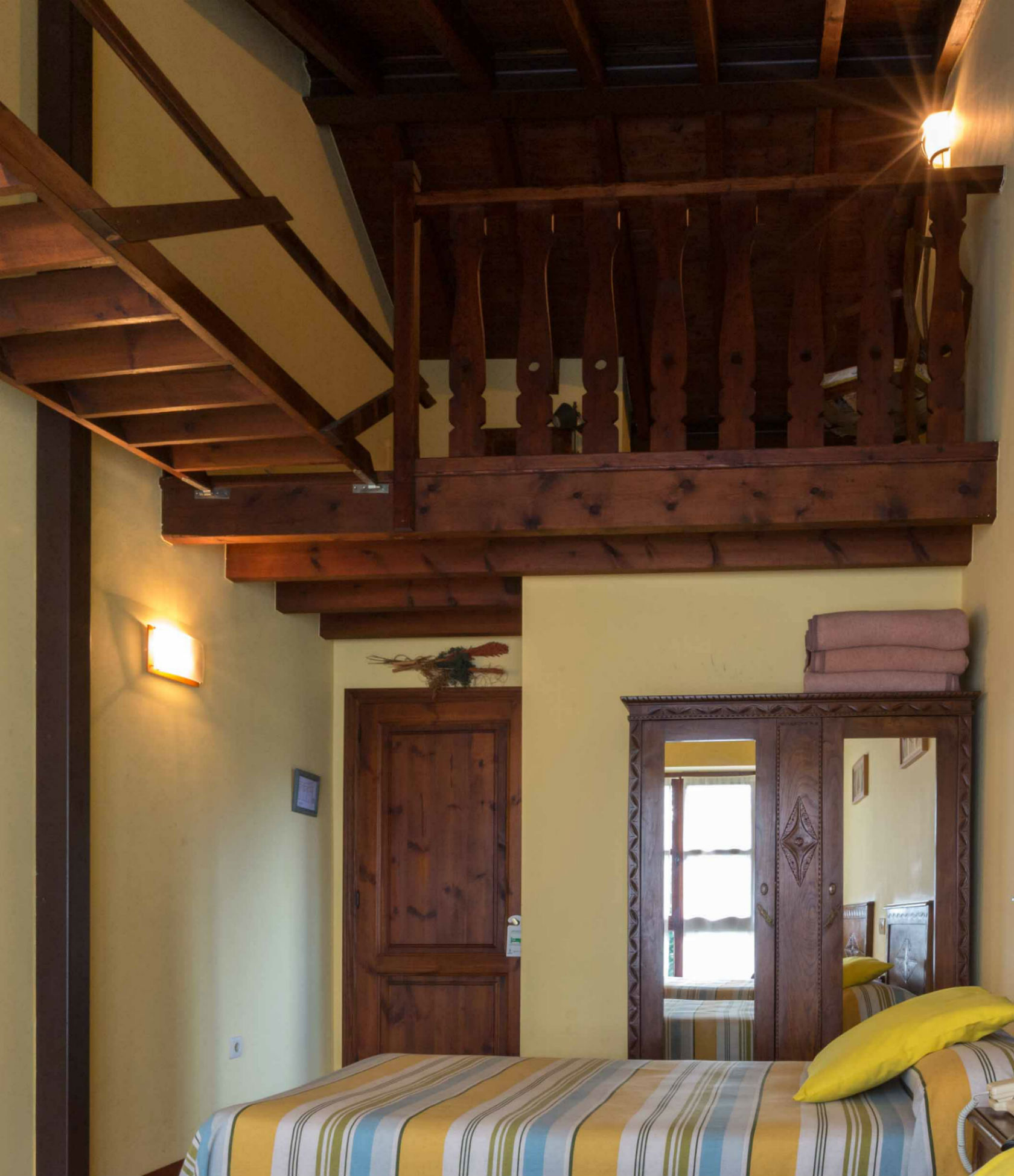 Disponemos de habitaciones con capacidad para dos personas con dos camas individuales o una doble y de habitaciones tipo dúplex con capacidad para tres o cuatro personas.