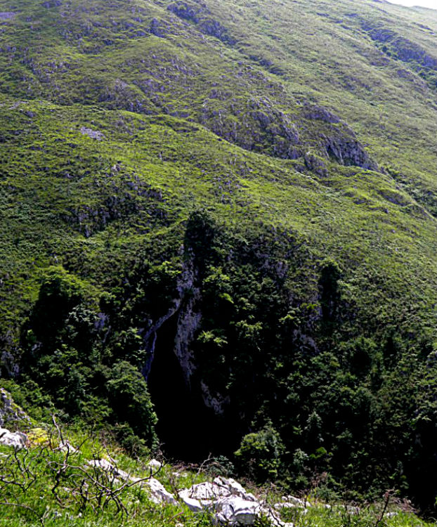 El ascenso hasta la boca no dejará de sorprendernos, se trata de un claro ejemplo de bosque atlántico con una clara representación de la flora que lo conforma. Junto a los helechos, robles o avellanos encontraremos grandes bloques del derrumbe de piedra caliza que se ha ido descolgando desde la cueva.