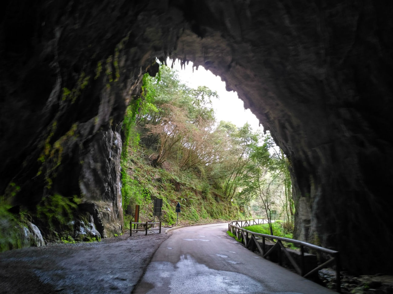 La Cuevona de Cueves da paso a la aldea homónima. Fin del trayecto. A partir de aquí sólo se puede continuar andando o nadando. O en tren, pues la vía del FEVE continúa hasta Oviedo trazando uno de los recorridos más bellos de la Península. Especialmente este primer tramo pasado Cueves hasta llegar a Arriondas, donde la vía se alinea en perfecta armonía con el Río Sella.
