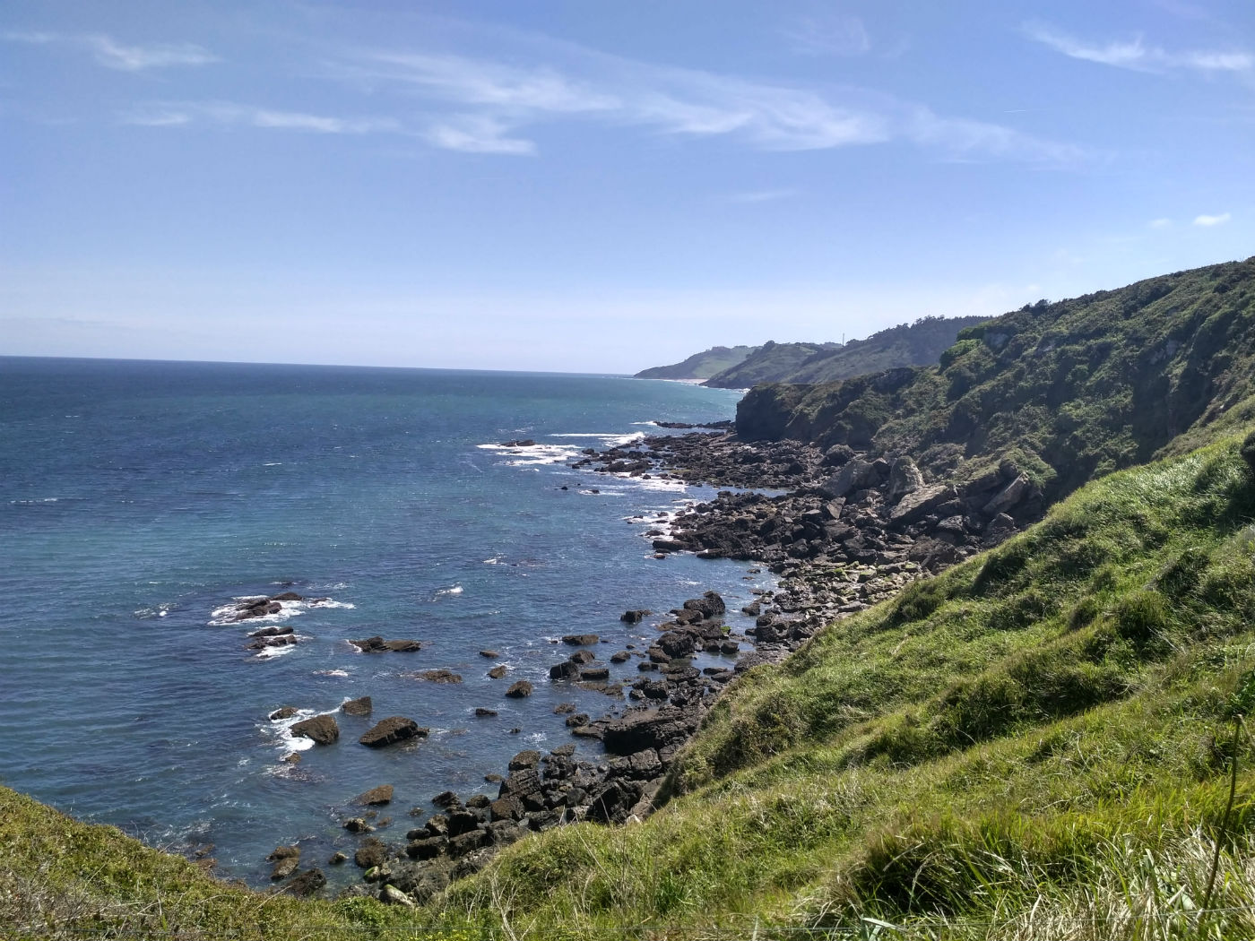 Este primer tramo ya es un deleite visual. Caminamos sobre el Cantábrico, entre verdes praderías, alineados con el perfil del acantilado y con la Villa marinera de Lastres al fondo.