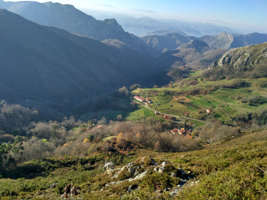 Comenzamos la subida por la pista hormigonada que parte desde la Collada. Según vamos subiendo vamos apreciando un paisaje salpicado de sierras, montañas y valle. Un regalo para los sentidos. En pocos metros a nuestra izquierda y tras un recoleto bosque de robles aparece bajo nuestros pies el pueblo de Igena. En esta altura también se encuentra localizado el abrevadero de El Robleu, que lógicamente hace referencia al robledal que acabamos de mencionar.