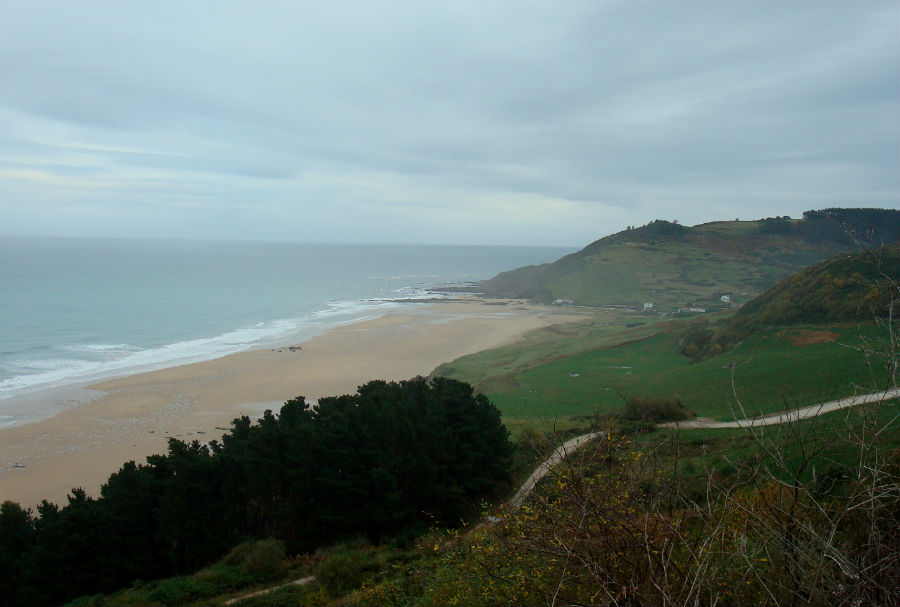 Una vez cruzado el puente, caminamos por el sendero que discurre en paralelo a la playa. Unos metros después encontraremos un desvío a nuestra izquierda. Está marcado como Camino de Santiago, pero nosotros debemos dirigirnos a la derecha para entrar más adelante en el arenal de la playa. Tenemos que andar por las finas arenas de la misma hasta su final. Aquí, a nuestra izquierda parte un camino que sube hacia la parte más alta.