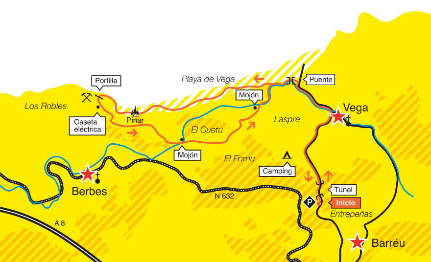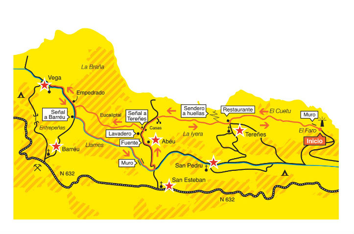 Nous marchons depuis le phare de Ribadesella par la route nous conduisant d’abord à Tereñes puis à Abèu, où nous prendons un sentier facile à reconnaìtre grâce aux panneaux de signalisation de distribution du gaz. Nous arriverons au villaje de Vega et à sa plage. Le retour se fait par le Chemin de Saint-Jacques jusqu’à Abéu, où nous reprendons notre itinéraire de départ.