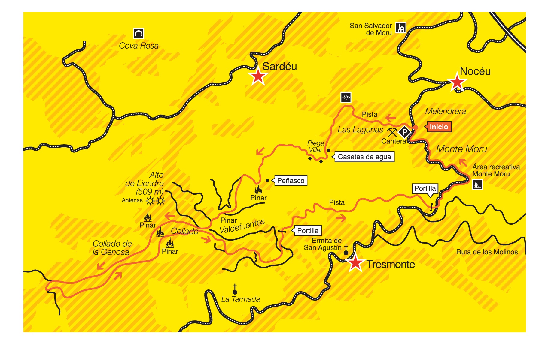 Chemin de randonnée circulaire entre les villages de nocéu et Tresmonte qui passe par une zone nommée La Genosa et qui nous office des spectaculaires vues des villes de Sardéu et Calabrez, ainsi qu’il nous permet d’observer depuis sa partie la plus èlevèe, un large panorama des Pics d’Europ.