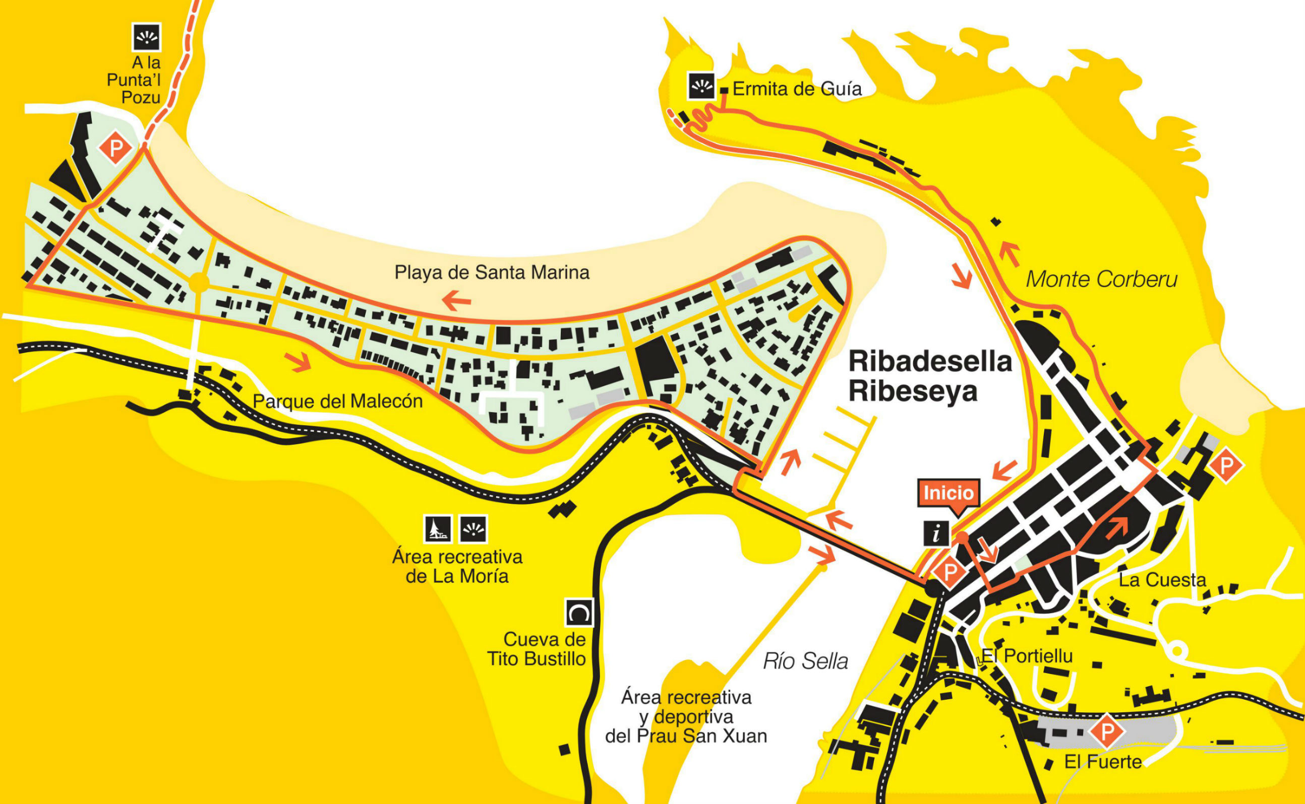 Il s’agit d’un parcours urbain qui permet de découvrir les coins le puls importants de Ribadesella en sortant de l’Office de Tourisme. Il traverse les rues principales et arrive jusqu’au mirador de l’ermitage de Guía, en passant par le pourt de pêche et le pont du fleuve Sella. Une fois traversé, nous marchons syr la plage de Santa Marina pour retourner au point de départ.