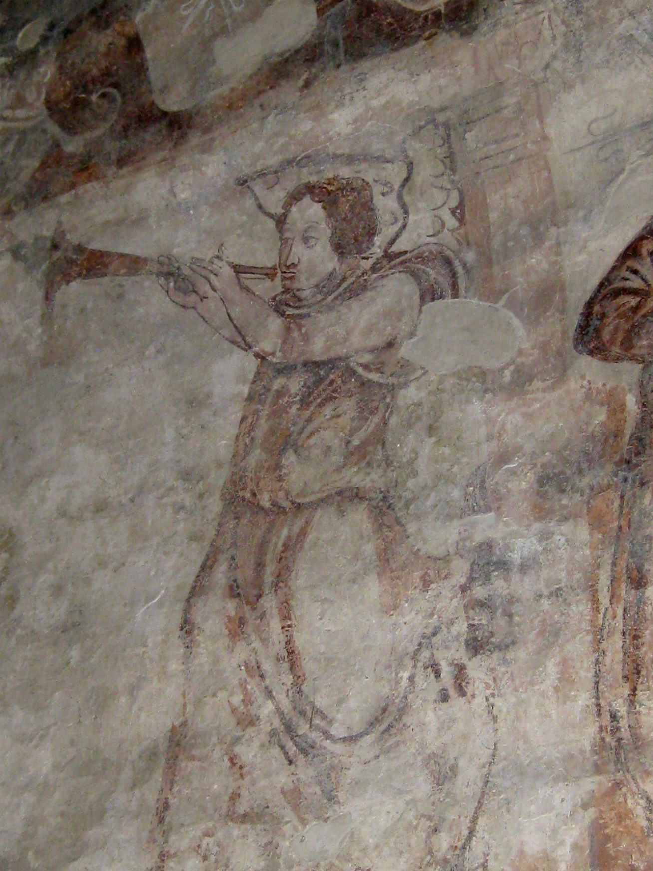 Curiosamente, fueron las llamas del incendio provocado durante la Guerra Civil, las que sacaron a la luz las pinturas murales del siglo XVI al favorecer el desprendimiento del encalado de la bóveda.