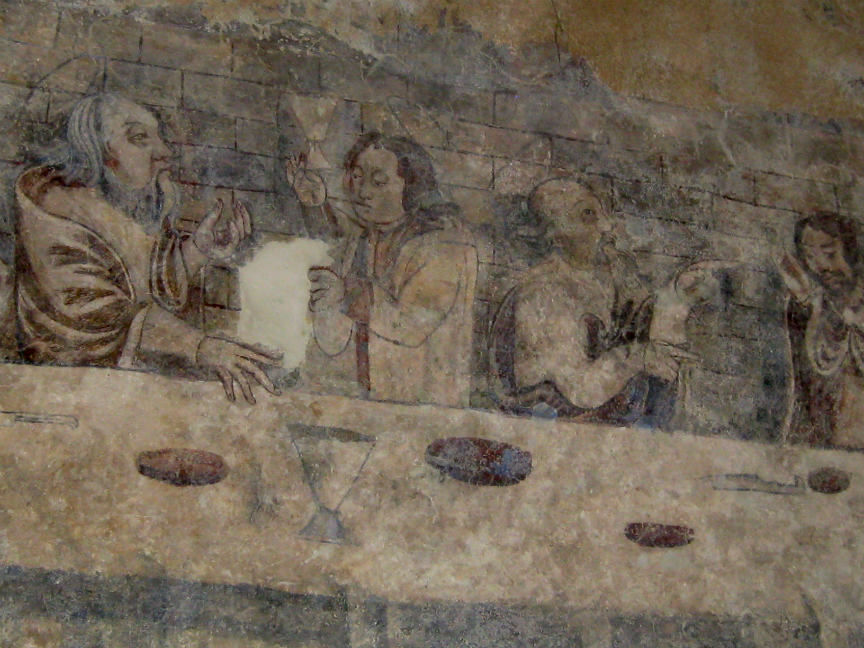 - Segundo tramo. Sobre los muros de arranque. Temática del ciclo de la Pasión. Muro de la izquierda, se representa la Santa Cena. Muro derecho, la Oración del Monte de los Olivos.
