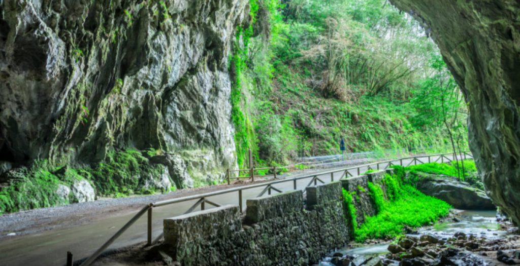 Un paraje único, espectacular y diferente. Imperdible. Se trata de una enigmática cavidad donde aparecen todo tipo de formaciones. Estalactitas, estalagmitas, columnas y banderas juegan con luces y sombras en un ambiente natural donde los niños pueden dar rienda suelta a su imaginación. La gruta, de unos 300 metros de longitud, da acceso a Cueves. Una preciosa y auténtica aldea asturiana junto al Sella repleta de hórreos